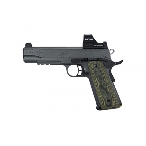 The KHX Custom/RL (OI) has a milled slide that has a Holosun HE507C-GR-X2 optic installed. Equipped with 1913 Picatinny accessory rail & Stiplex front strap stippling for extra grip confidence.